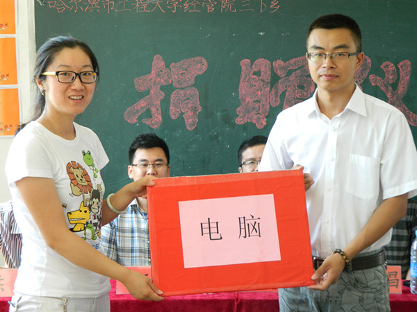 接着,44118太阳成城集团团委书记史波老师、副书记于云亮老师向新荣小学两名学生捐赠助学金,44118太阳成城集团学工办主任向新荣小学捐赠了电脑、投影仪、学习用品、体育用品等。