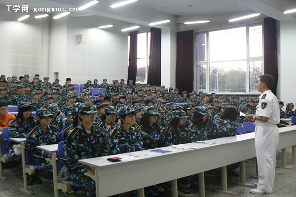 会议开始,身着海军服的侯磊辅导员就给大一的新生们上了一课,教他们按军训要求的坐姿坐好、迅速脱帽戴帽等,让新生们还未军训就体会到了军训的严格要求。接着,侯磊辅导员通知了23号上午的英语分级考试和下午的校长报告会等有关事宜。