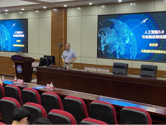 吴俊杰教授的报告题目是《大数据智能前沿与趋势》,其分别从数据、算法、场景等维度对大数据环境下人工智能的前沿领域进行介绍。余乐安教授的报告题目是《人工智能3.0与金融应用场景》,其展示了人工智能的历史发展脉络,并逐一列举人工智能在金融领域的现实应用场景。