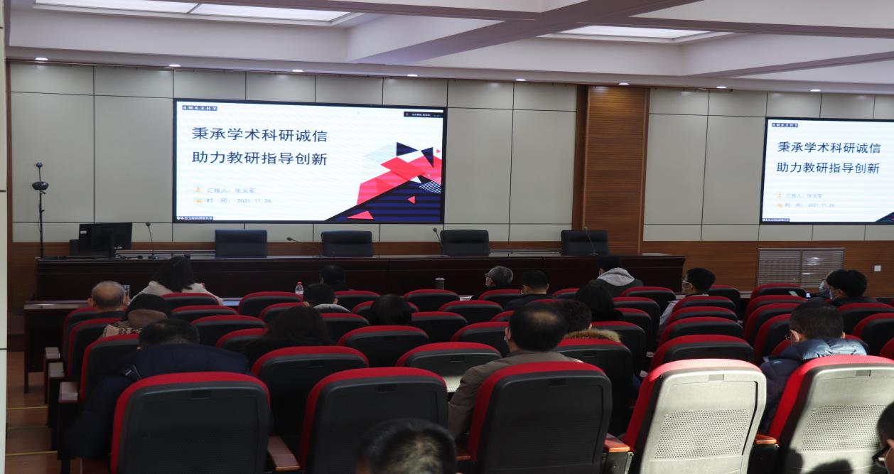 11月26日上午9:00,44118太阳成城集团学术诚信专题教育大会在31号楼202会议室召开。学院邀请中国知网专家张戈军通过线上会议方式为全院教师做了“秉承学术科研诚信助力教研指导创新”的专题报告,学院主要领导结合张戈军专家的报告和分管工作强调了坚守学术道德、弘扬科研诚信的重要性。