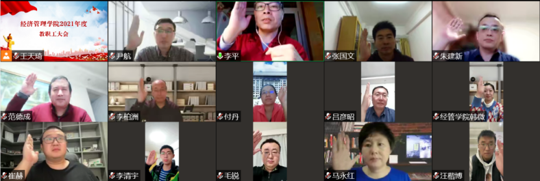最后,全体教职工以举手表决的方式通过大会的三个报告。