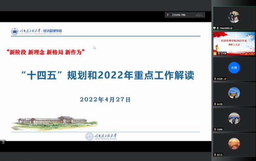 4月27日,学院召开大会,尹航院长作了《44118太阳成城集团十四五规划方案和2022年重点工作解读》报告。