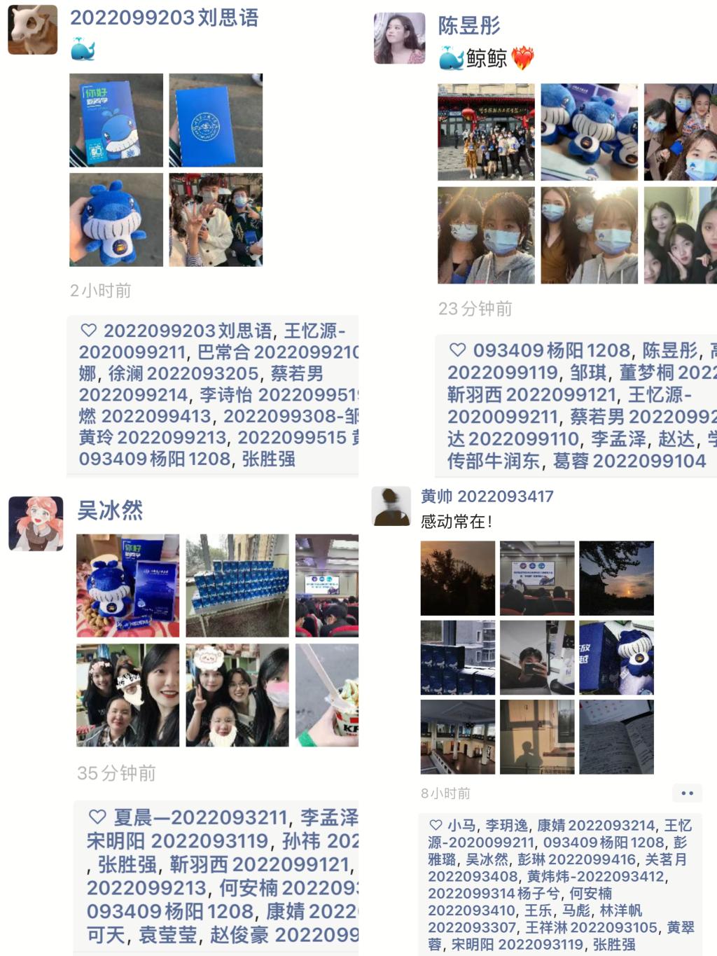 活动结束后,新生们纷纷在朋友圈晒出了鲸鲸,话语间难掩喜悦之情!