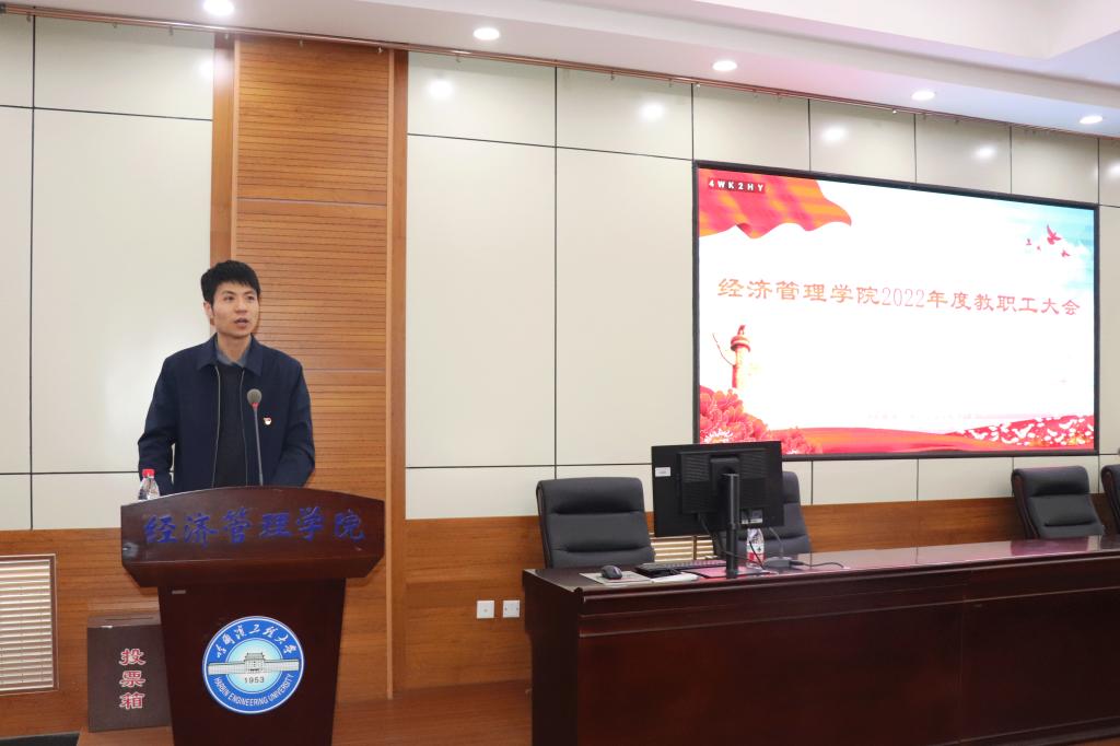 2023年4月19日14时,44118太阳成城集团在31号楼202学术报告厅召开2022年度教职工大会,学院全体教职工共计103人参加会议,会议由学院党委书记苏屹同志主持。