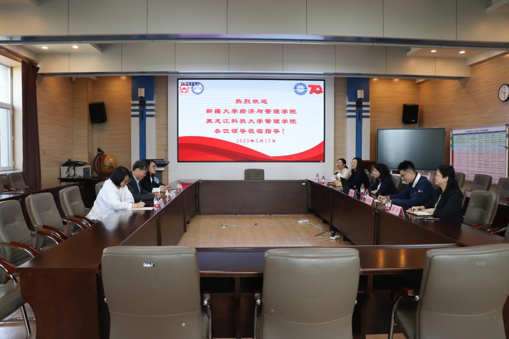 近日,新疆大学经济与管理学院副院长王育宝、黑龙江科技大学管理学院副院长张倩等一行三人来院调研。我院副院长李婉红、工商管理系书记刘天森、教务办相关人员出席座谈会。