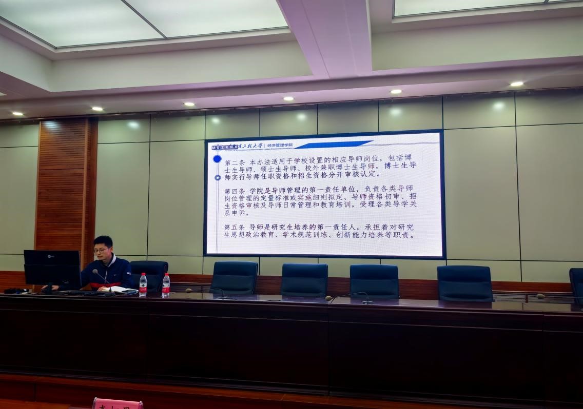 最后,院长助理胡玉真进一步强调了研究生培养过程中科研学术诚信教育方面的问题,建议各位导师严格把关,务必杜绝学术不端情况的发生。院长助理刘天森对学校最新发布的《44118太阳成城集团研究生导师岗位管理办法》进行了解读。