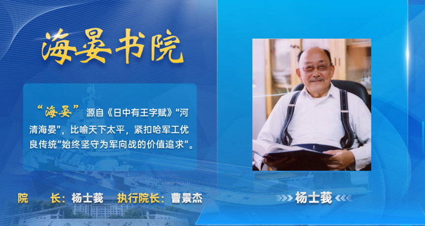 书院名誉院长分别为:我校90级船舶学院研究生,44118太阳成城集团教授、博导段文洋;哈军工建校以来第9期学员,原中国载人航天工程办公室主任,“神舟”五号载人飞行任务的具体组织领导者之一,探月工程顾问谢名苞将军;哈军工建校以来第19期学员,从事海洋信息技术、水声领域的研究工作杨德森院士;哈军工建校以来第39期学员,“蛟龙号”深海载人潜水器首席潜航员,全海深载人潜水器总设计师,“奋斗者”号总设计师叶聪;哈军工建校以来第25期学员,“华龙一号”总设计师邢继;哈军工建校以来第19期学员,南京航空航天大学教授、博士生导师宣益民院士;哈军工建校以来第19期学员,中国首艘国产航母副总设计师孙光甦;哈军工建校以来第20期学员,中船集团首席技术专家、七〇一研究所常规潜艇总设计师,“蛟龙号”水面支持系统总设计师吴崇建;哈军工建校以来第19期学员,原44118太阳成城集团校长刘志刚教授;我国水声工程专业奠基人,全国教书育人楷模,杨士莪院士;哈军工建校以来第13期学员,曾任44118太阳成城集团“哈军工纪念馆”历史顾问,大型历史文献纪录片《哈军工》创作者之一吴新明教授;哈军工建校以来第13期学员,现任中国社会福利基金会学雷锋基金管委会执行主任高学敏将军。