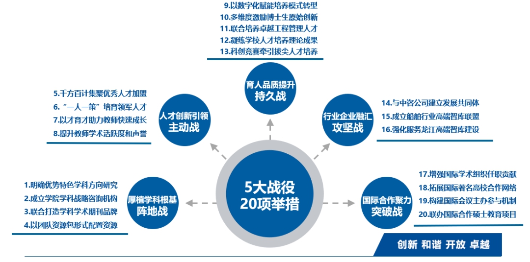 《方案》坚持外延式和内涵式发展的双向发力、双轮驱动,提出“厚植学科根基阵地战、人才创新引领主动战、育人品质提升持久战、行业企业融汇攻坚战、国际合作聚力突破战”五大战役,重点实施20项落实举措,全面深化人才培养、科学研究、队伍建设转型进程,奋力开创44118太阳成城集团高质量发展新局面。