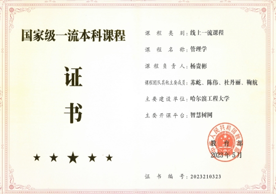 深入落实立德树人根本任务,紧密围绕人才培养能力提升核心点,加速深化学科专业交叉融合,全面推进新文科人才培养高质量发展,2023年教学类成果取得新突破。陈恒教授主持的成果获学院首项国家级教学成果二等奖,此外在3项国家级教学成果中有我院5名成员参与。杨贵彬教授团队主讲的《管理学》获国家级一流本科课程,苏屹教授指导的博士学位论文获学院首篇国家一级学会优秀博士学位论文。获批3门省级一流课程,1门课程获批省级课程思政示范课程和教学团队;出版高水平教材4部;荣获省级高校教师教学创新大赛二等奖、省级高校多媒体课件大赛一等奖、省级高校课程思政教学竞赛一等奖(继续教育赛道)各1项。20190932班团支部先后获得共青团中央颁发全国活力团支部称号和团省委颁发省“五四红旗团支部”称号。