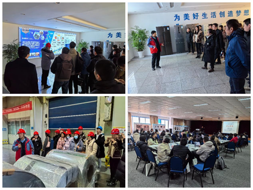 师生一行参观了青岛河钢新材料的操作车间和生产线,近距离感受制造企业的生产流程和智能制造。在这个过程中,大家了解了企业的发展历程和产业布局,就企业管理、精益生产、产品创新等企业实践进行交流,把运营管理课程上在了企业一线。